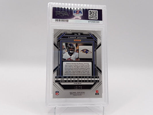 2022 NFL Prizm LAMAR JACKSON /79 “No Huddle” BLUE DISCO PSA GM 10