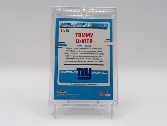 2023 Donruss Optic Tommy Devito RC Blue Prizm /35 Rookie On-Card Auto NY Giants