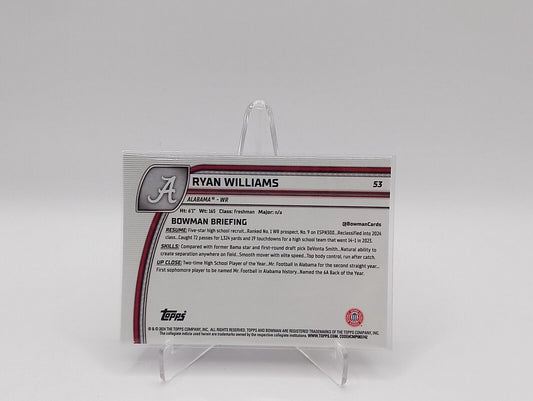 2024 Bowman University U Chrome Ryan Williams Blue Sparkle Alabama /175